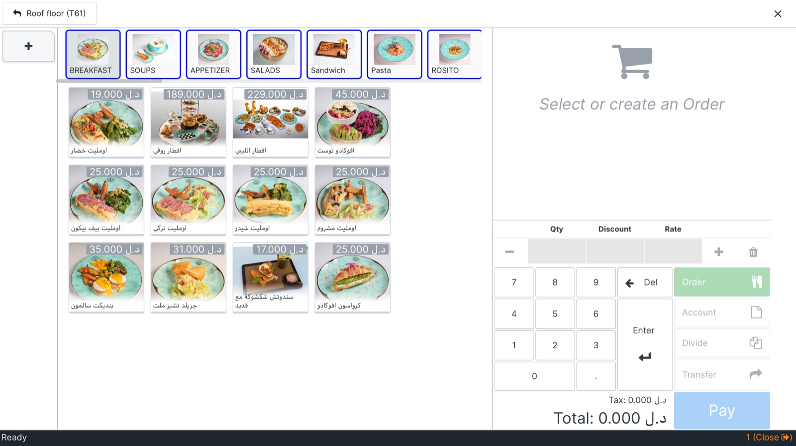 - شاشة طلبات سهلة الاستخدام لعرض قائمة الطعام.